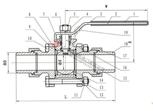 4、Q21F三片式活接對焊球閥主要根據剖面、長度、高度、外形等作出說明。