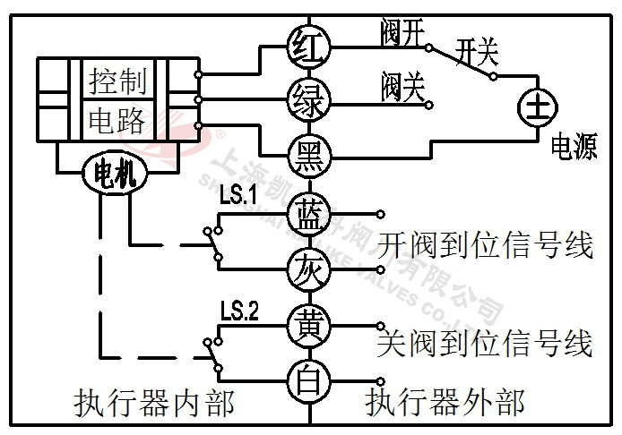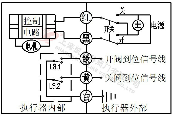 2、開關(guān)與紅線接通,閥門打開,閥門全開到位后執(zhí)行器內(nèi)部自動斷電。