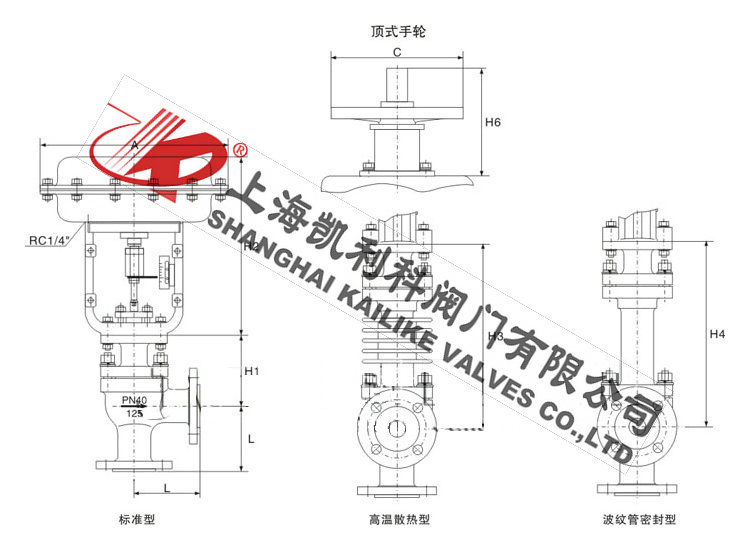 上  閥  蓋 標準型:-17-230℃  散熱型:230-450℃  低溫型:-60--196℃  波紋管密封型:-40-350℃