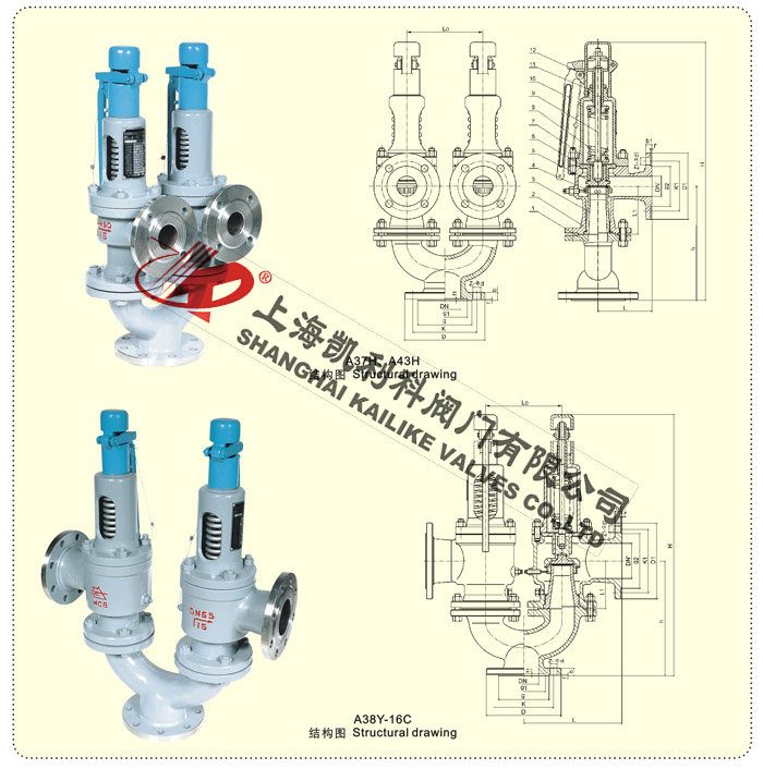 聲明:【A38Y,A43H,A37H雙聯彈簧式安全閥】規格型號、結構尺寸由上海凱利科閥門有限公司提供,如何選擇適用的A38Y,A43H,A37H雙聯彈簧式安全閥產品,使之在工藝控制中安全可靠、經濟適用,可致電我司銷售部門及技術部門,我們將在最短的時間內為您解答!