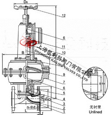 8、視膠隔膜閥的閥體內(nèi)腔表面視復(fù)有廳供選擇的多種橡膠。因此具有優(yōu)越的耐腐蝕的特點(diǎn)。