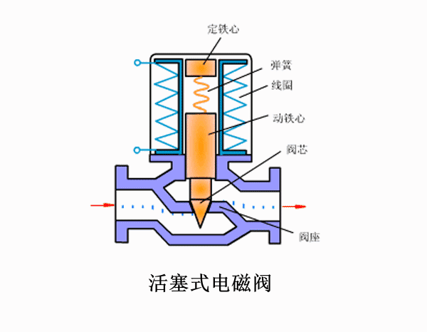 活塞式電磁閥的線圈通電后由于吸力作用,動鐵芯下移,把副閥閥塞壓下,副閥關閉,主閥閥杯內壓力上升,當壓力升到一定值時,主閥閥杯的上下壓差一樣,由于電磁力作用,動鐵芯失去主閥閥杯下,壓緊主閥閥座,閥門關閉。斷電時,電磁吸力為零,副閥閥塞和支鐵芯由于彈簧的作用向上提起,副閥打開,主閥閥杯上的流體經副閥流走,減少了作用在主閥閥杯上的壓力,當主閥閥杯上的壓力減少到一定值時,利用壓差將主閥閥杯推起,主閥打開,介質流通。