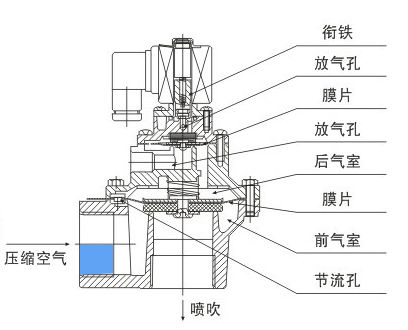 1)常閉型,通電時電磁線圈產生足夠的電磁力把運動部件(由磁芯、閥桿、上下部的膜片/密封件構成)從閥座上提起,閥門開啟;斷電時彈簧力把運動部件壓在閥座上,閥門關閉。